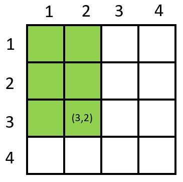 如下图:绿色的部分就表示二位前缀和区块 ( S[3,2] ):