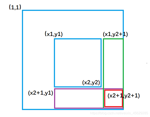 如下图:蓝色的部分就表示差分和区块 ( S[x2,y2] ):